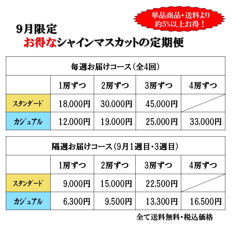 シャイン定期便_9月コース価格表